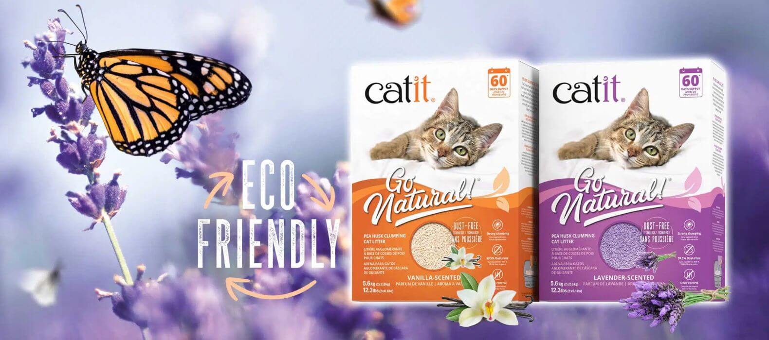La arena para gatos Catit Go Natural de cáscaras de guisantes es una arena de aglomeración compacta para gatos que facilita el manejo del arenero, y evita molestias al no soltar nada de polvo. Esta arena para gatos ligera está disponible en dos variedades con sútil aroma a vainilla y lavanda.