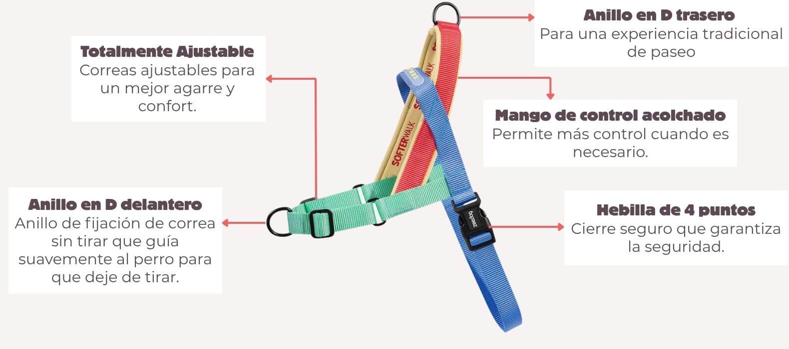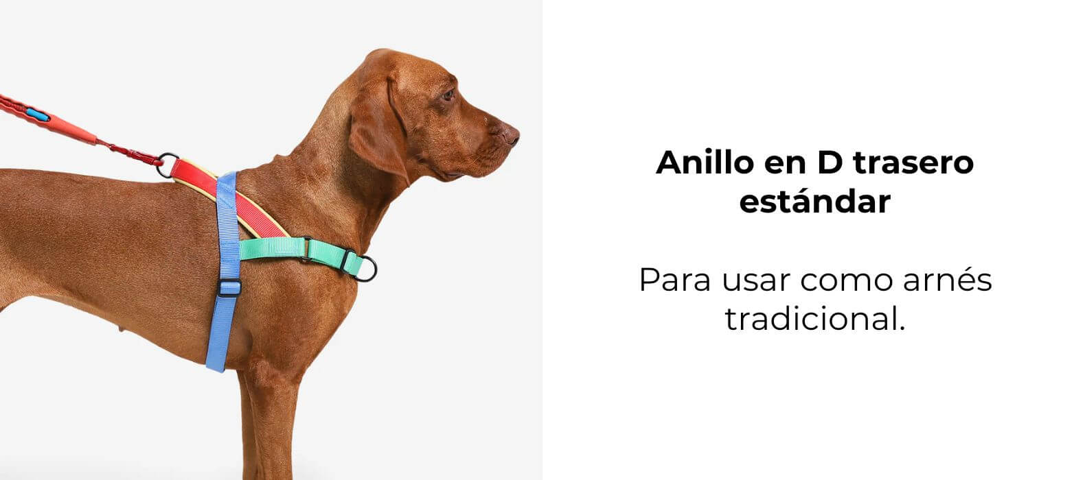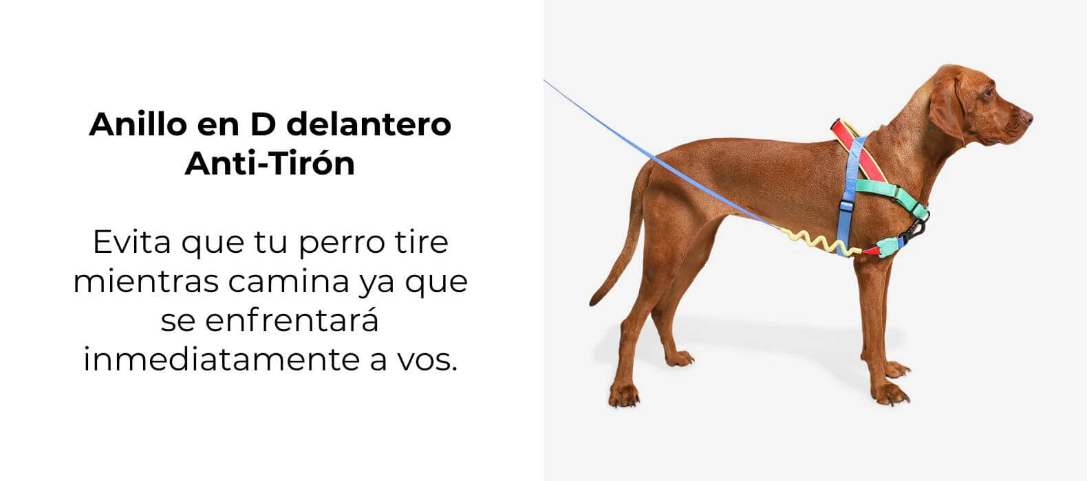 💡 Colocar la correa en el anillo en D delantero evita que tu perro tire mientras camina, ya que el se enfrentará inmediatamente con vos.