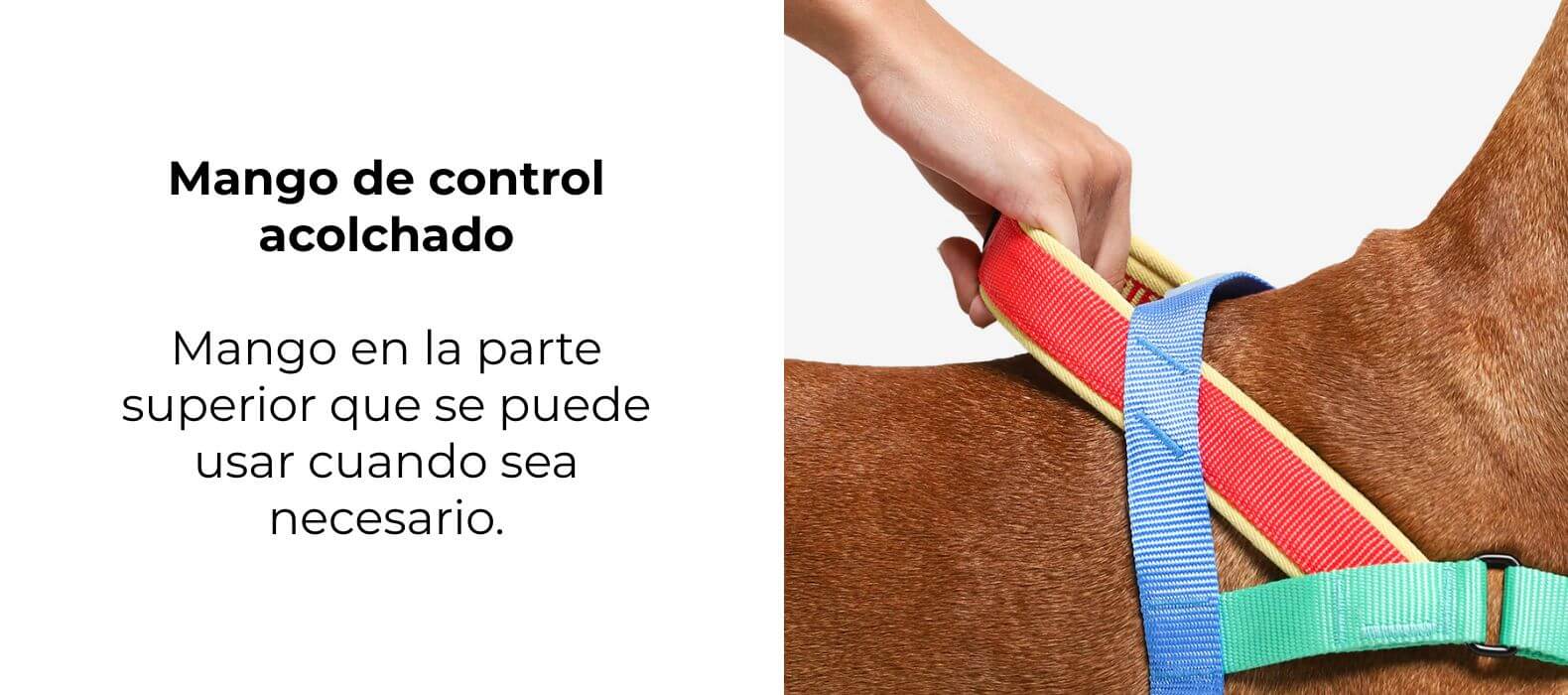 El arnés es completamente ajustable y está hecho de tela suave que es cómoda en el pelaje del perro.