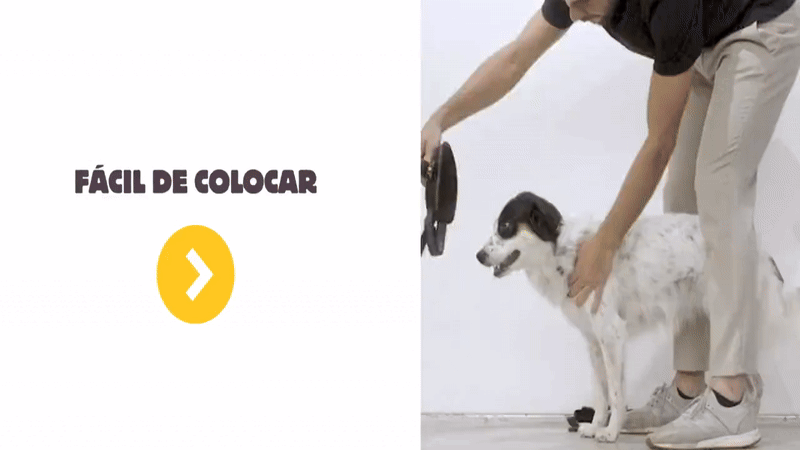 Su diseño permite una colocación rápida con un solo clic, y las correas ajustables en cuello y pecho garantizan un calce perfecto para cualquier tamaño.