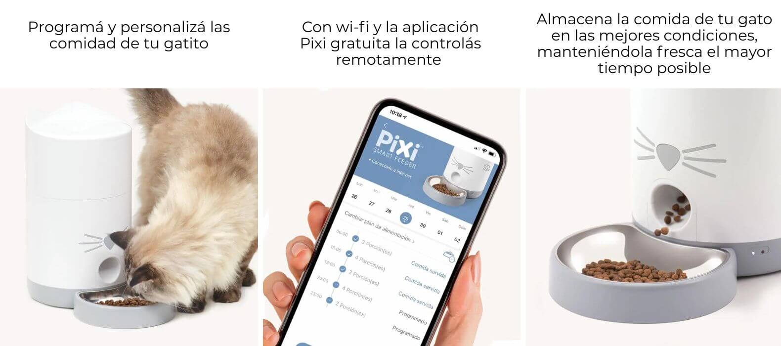 Dispensador automático de comida para gatos controlado remotamente a través de la app Catit Pixi. Podés programar las raciones y cantidades diarias para que tu gatito siempre tenga su alimento fresco a la hora de su comida.