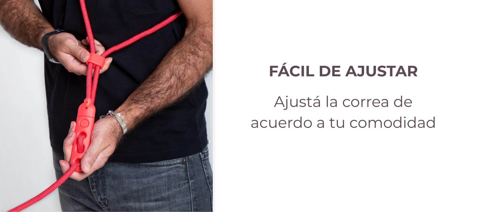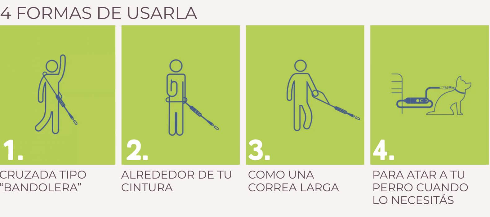 No sólo no ocupás tus manos en llevar la correa, sinó que además podes usarla con distintos largos y formas de agarre.